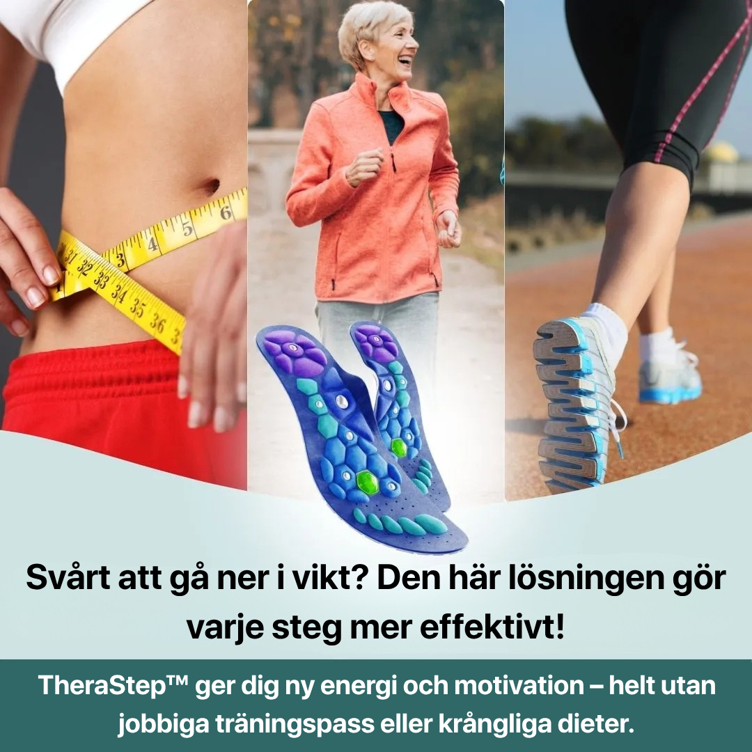 Förvandla vilket par skor som helst med de magnetiska TheraStep™-sulorna och upptäck känslan av lätt, stabil gång. Utvecklade för dig som vill gå ner i vikt på ett naturligt sätt – utan strikta dieter eller dyra redskap. Perfekta för vardagsbruk: promenader, träning, hundrundan eller hemma.